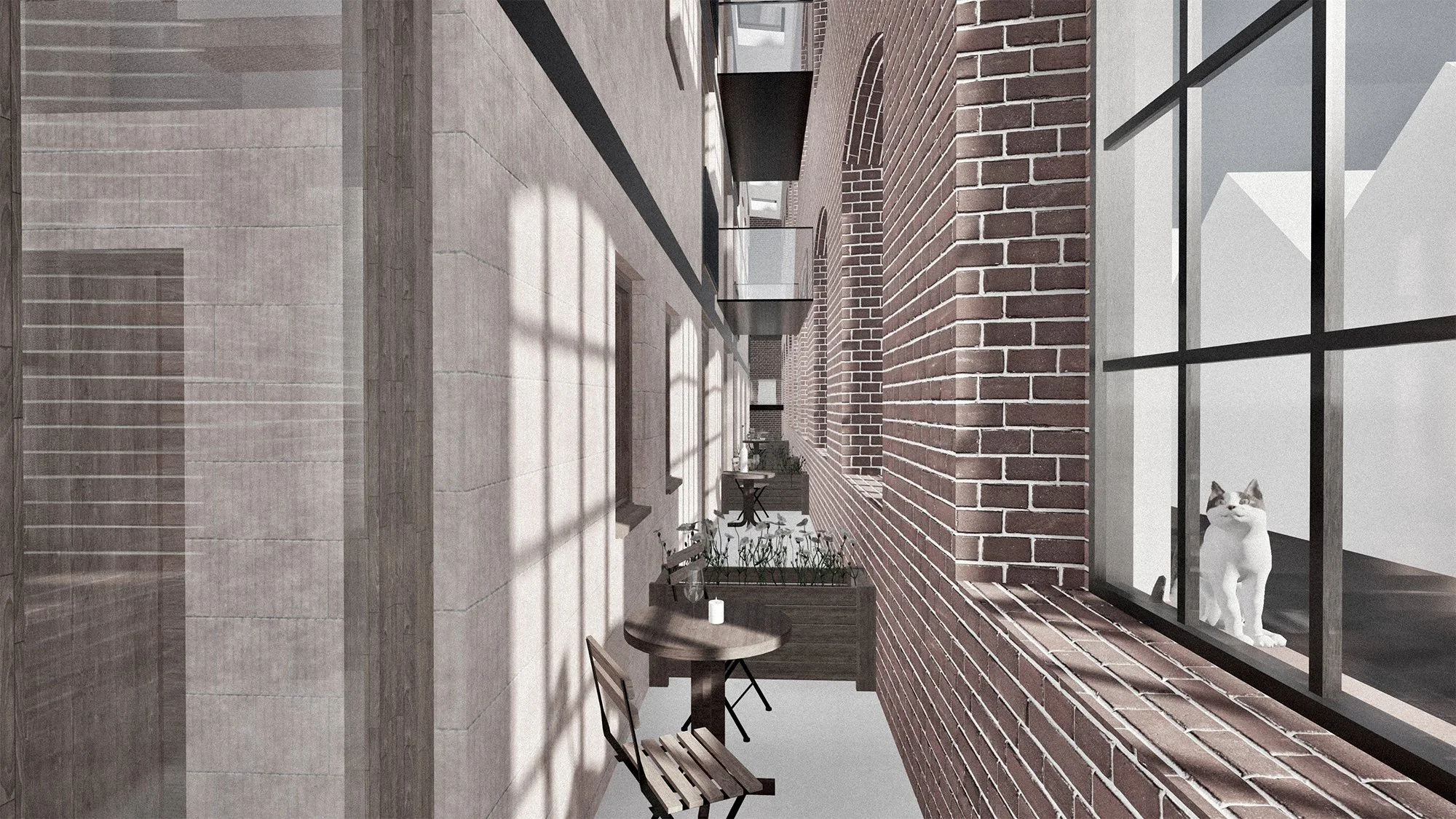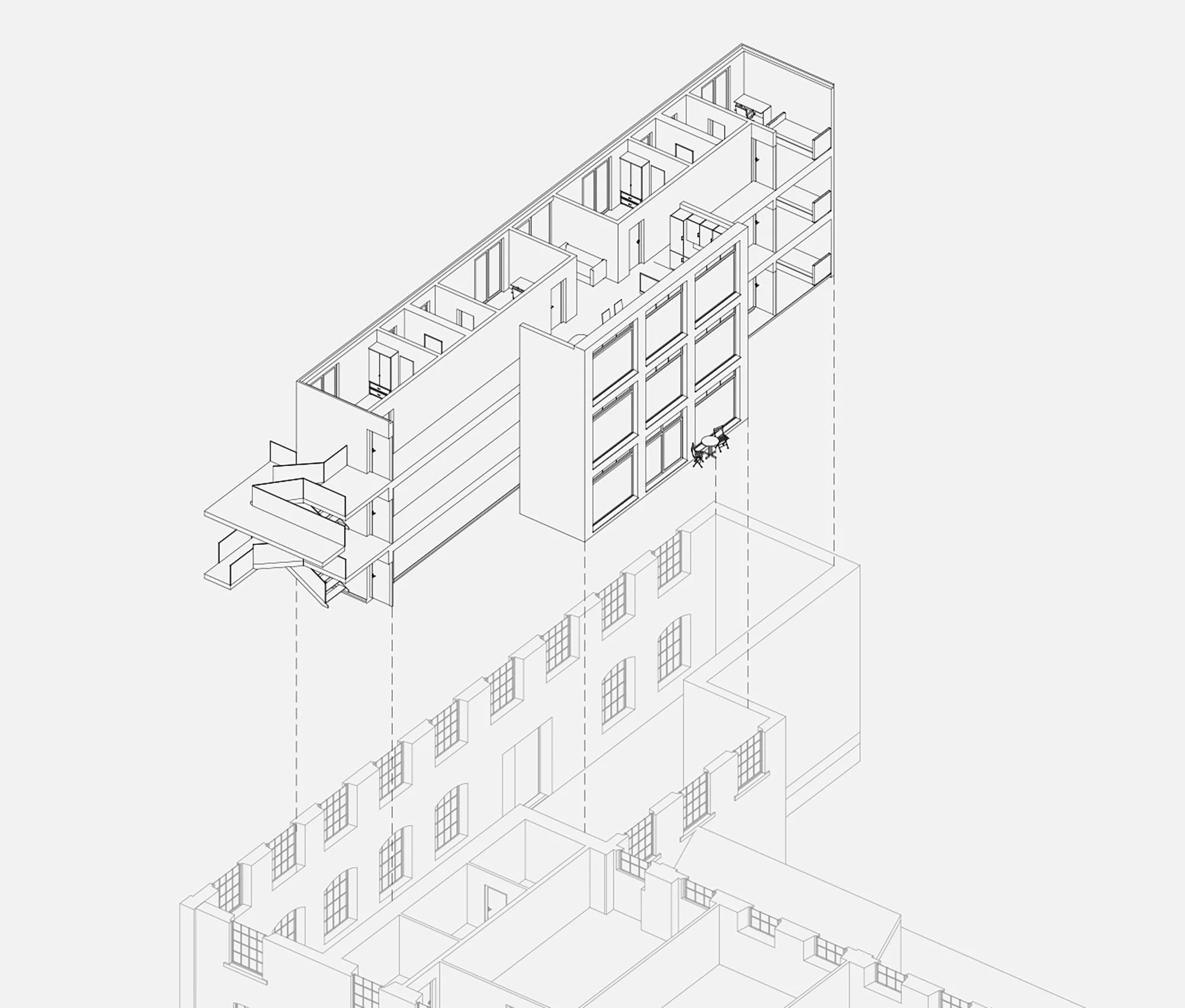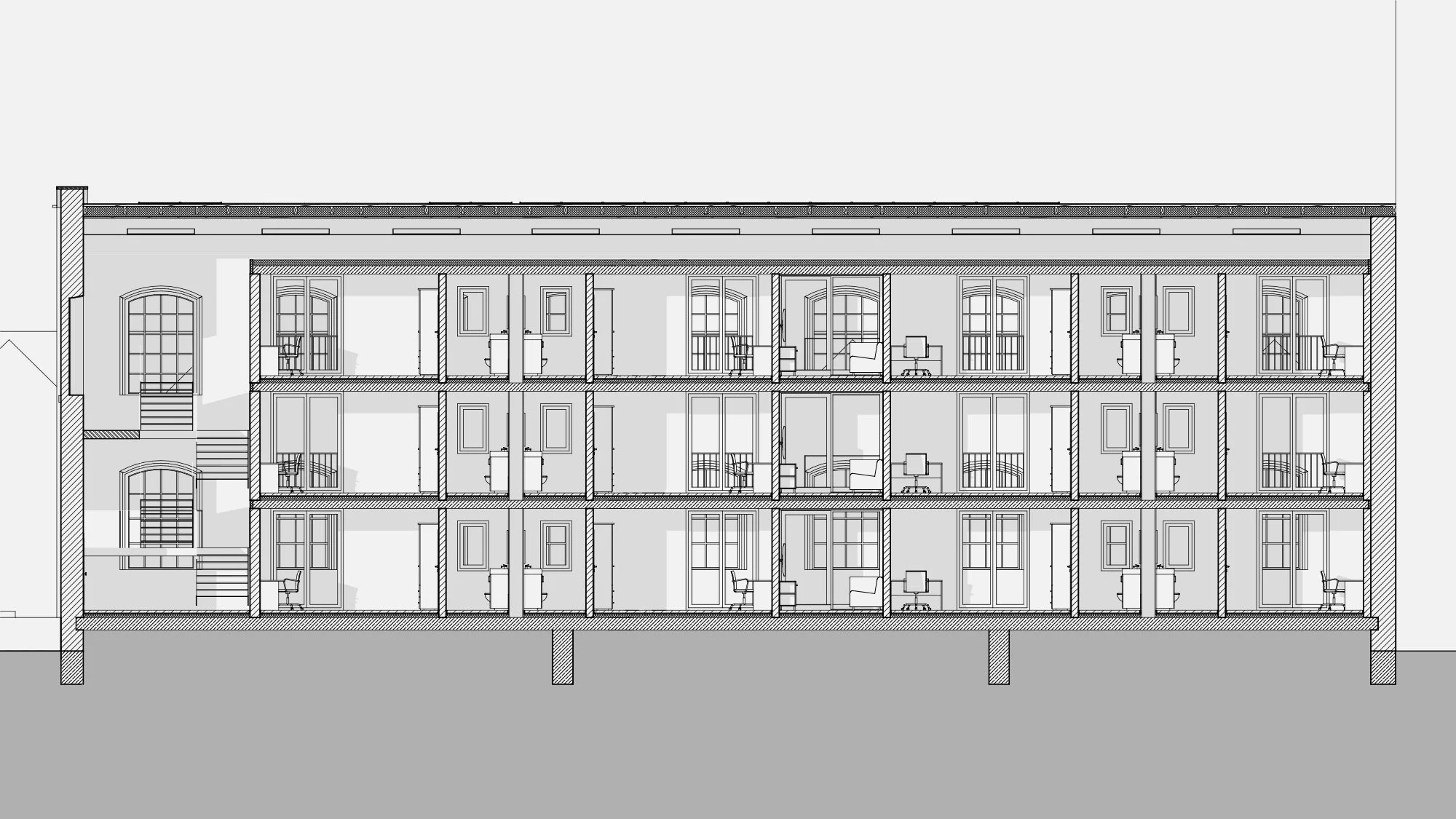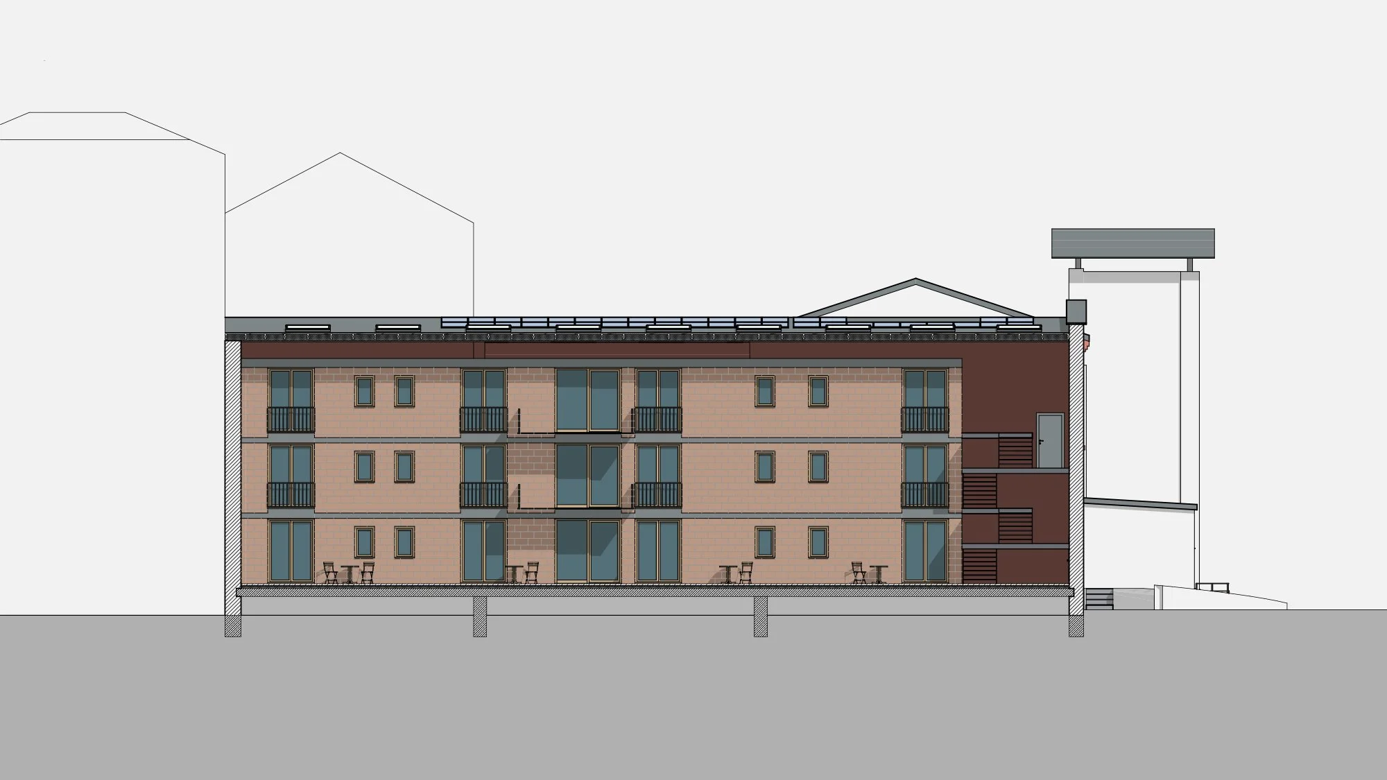 Unser Konzept „Haus in Haus“ ermöglicht einen behutsamen Umgang mit dem Bestand. Durch die Implementierung einer Doppelfassade entsteht ein einzigartiges Dämmkonzept, wobei die Außenfassade unberührt bleibt.