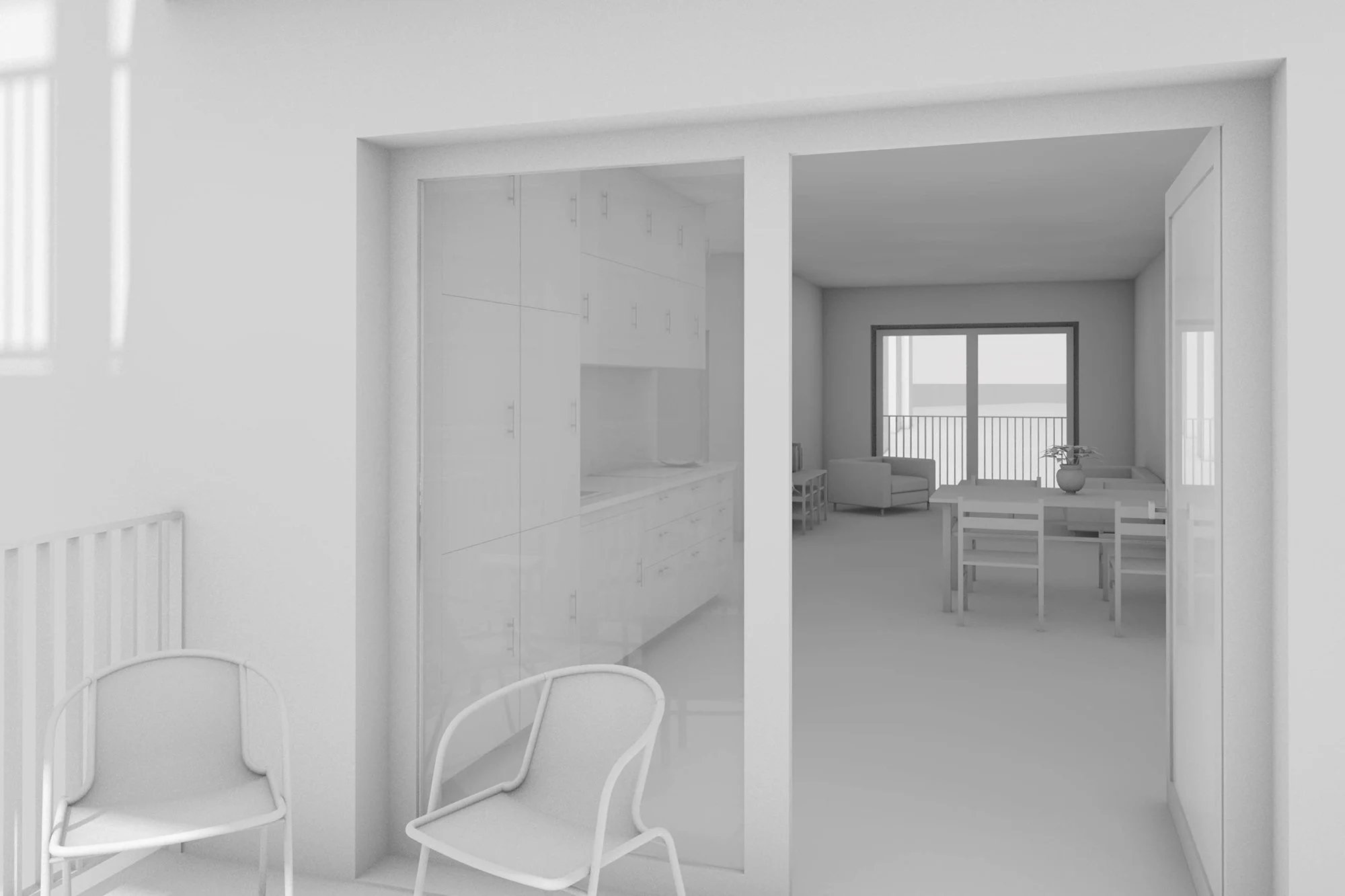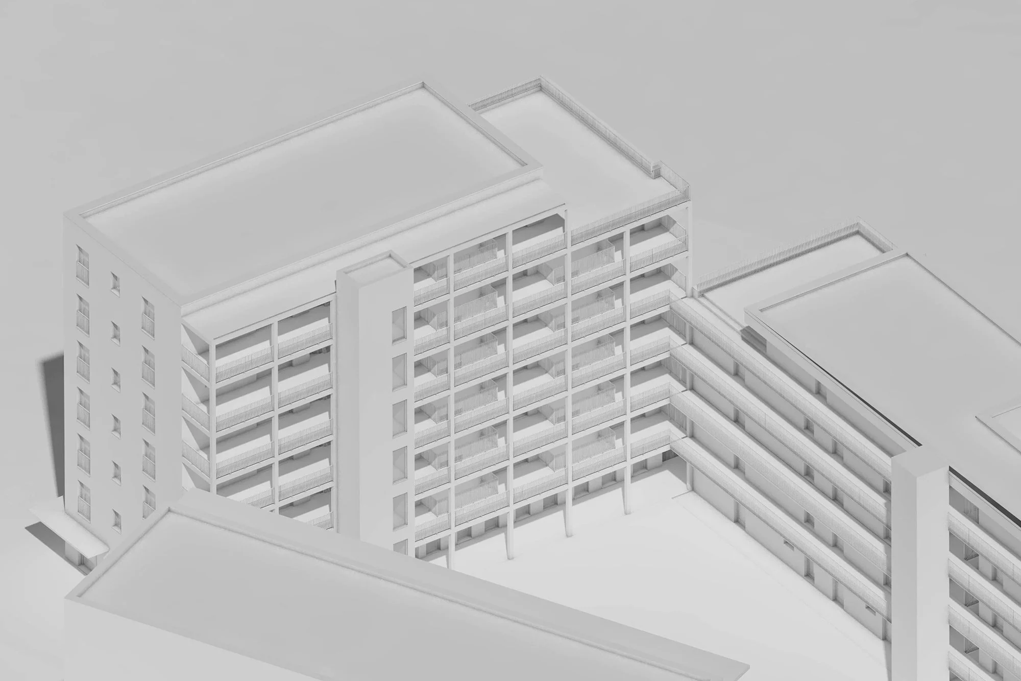 Die Wohneinheiten in unserem Gebäude folgen einem abwechselnden Raster aus schaltbaren Individualräumen und durchgesteckten Wohnbereichen. Somit ist eine variable Konfiguration unterschiedlicher Wohnungsgrößen von Ein- bis Fünf-Zimmer-Wohnungen möglich.