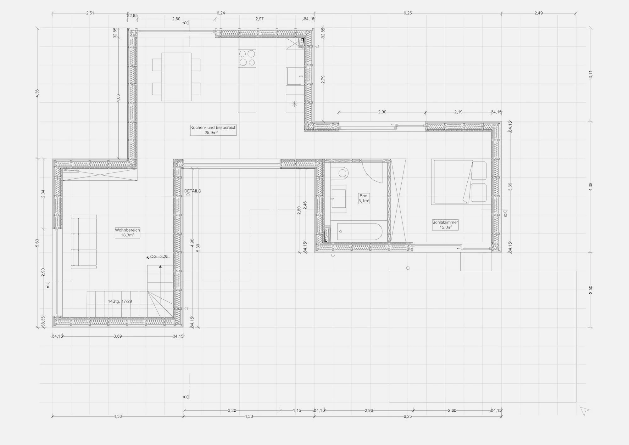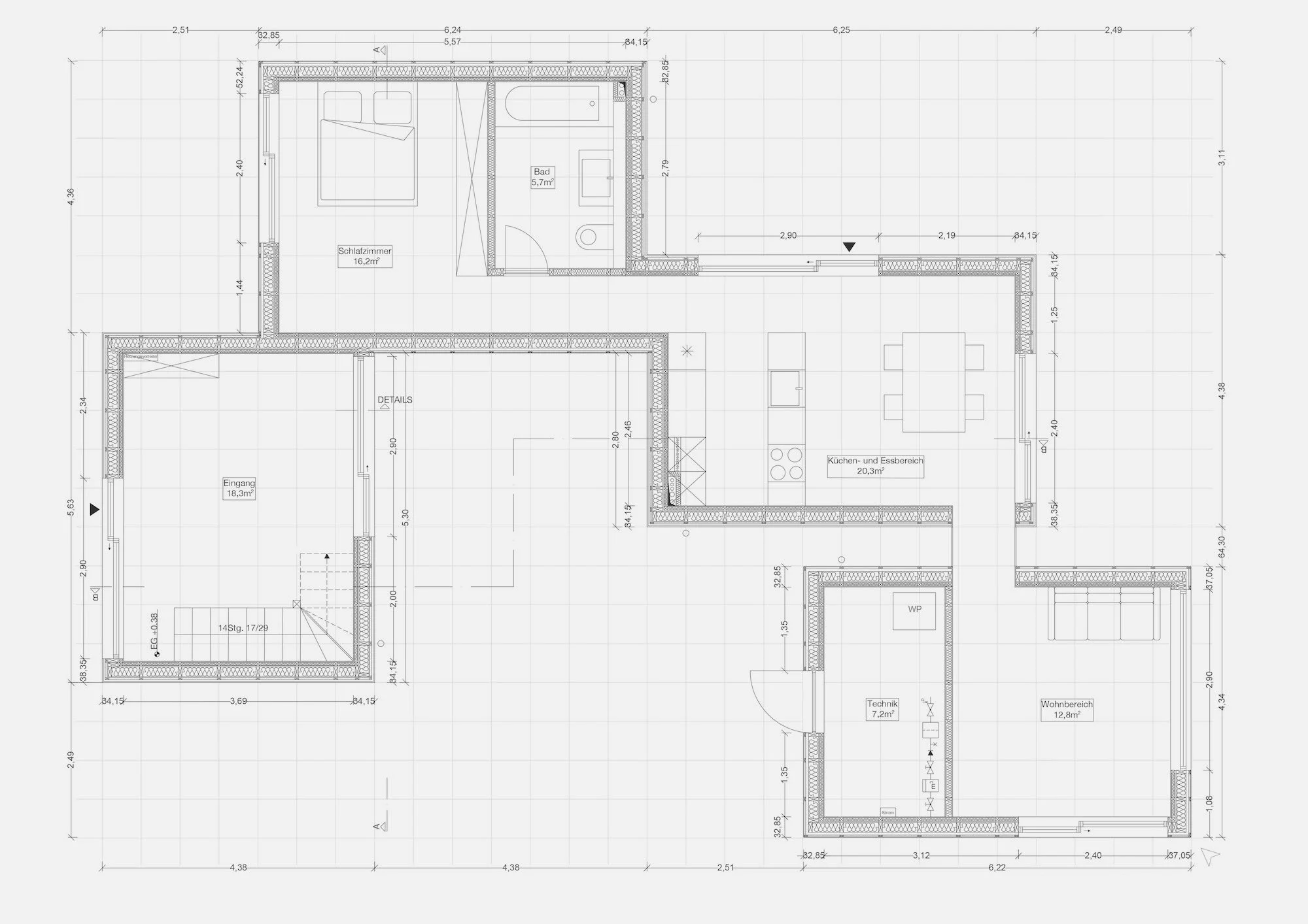 Durch die Umsetzung entstehen einige Veränderungen, wie zum Beispiel der Verzicht auf das Untergeschoss.
